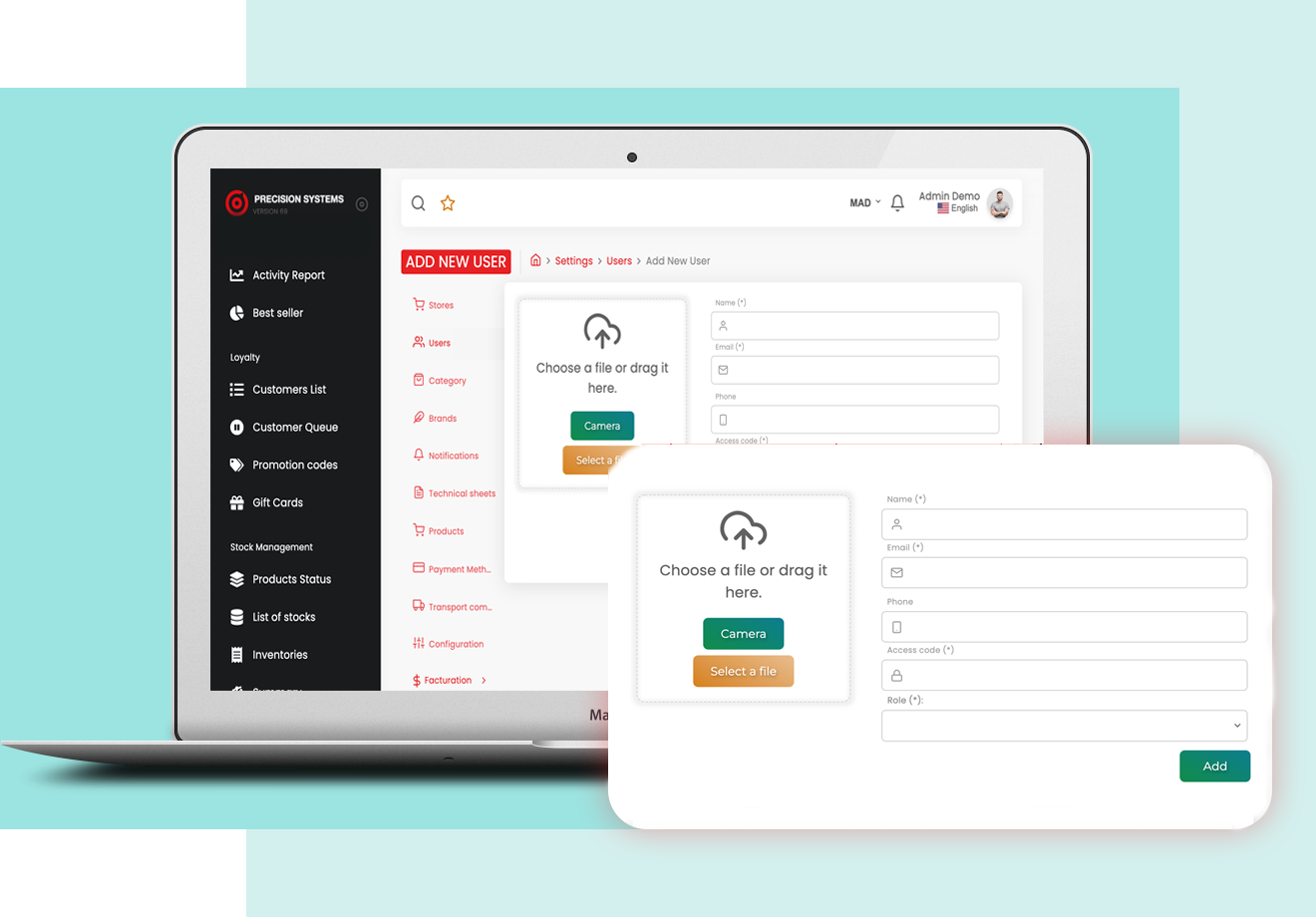 Allow different levels of access by defining role-specific codes for each user